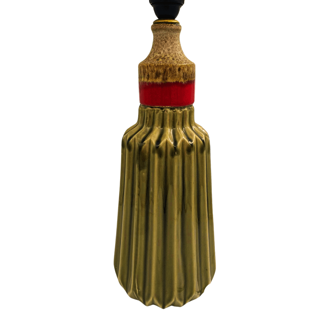 grijze keramieken vazen, gestapeld met een rood accent. hoogte ; +/- 50 cm doorsnede; +/- 20 cm